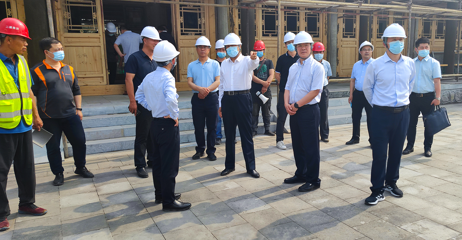 张建军董事长向吴清海书记汇报了雄安郊野公园承德园的规划设计、功能布局、工程建设等有关情况后,吴清海书记一行实地踏查了承德展园施工现场。