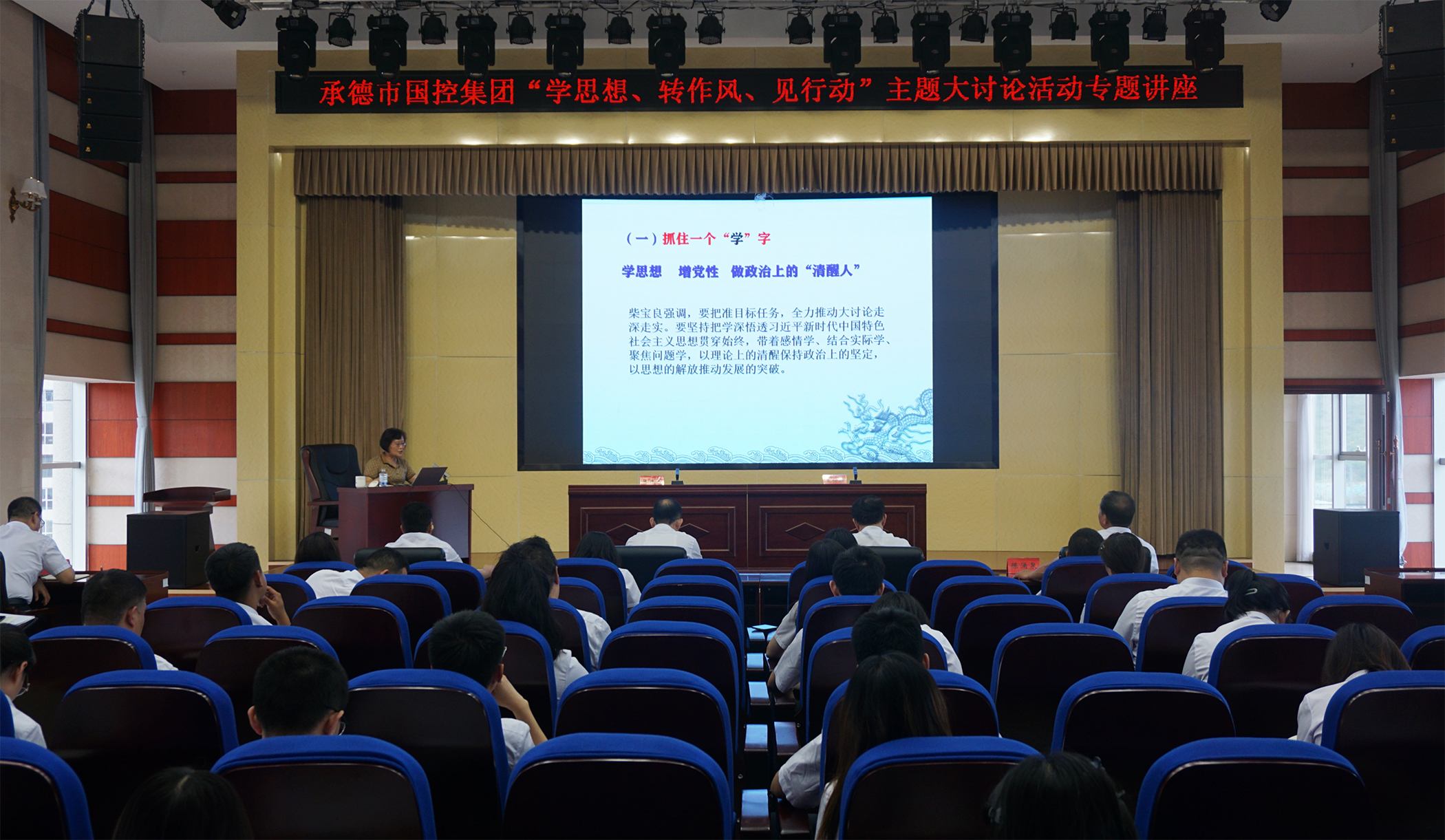 2023年7月6日,为深入学习贯彻习近平总书记关于坚持不懈抓好作风建设的重要论述,落实市委市政府关于在全市开展“学思想、转作风、见行动”主题大讨论活动精神,市江南(中国)邀请承德市委党校党史党建教研室主任王仲娟教授,开展了“学思想、转作风、见行动”主题大讨论活动专题讲座,市江南(中国)领导班子、集团本部全体员工、实际控制子公司中层以上负责同志及党员员工参加讲座。
